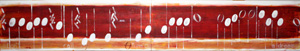 Spend much of tuesday night tweaking and re-painting, and wondering why is this canvas base is so red.  I worked more yellow and a lot more orange in,  losing it a couple of times.  Towards the end of Tuesday night I new I had done not much except applied extra coats of paint making  marginal changes.   It was a frustrating that ended by just letting it go.  On Wednesday I  put down the musical flow using my own unique symbols.