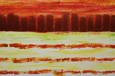Fragment picture from a 24 inch by 8 feet painting.  Trying too see what interesting interactions can be discovered using colors that bounce off of each other.  Never take the smooth road, the bumps are what makes the ride fun.