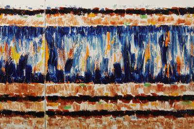 Fragment of this large 36″ by 14 foot canvas:  This canvas is based on the last 9 measures of this most wonderful musical piece.  What is seen here is the effect of the Birthday painting.  This work will take the impact of that days efforts and drain it to where this canvas now becomes the new painting to try and match.