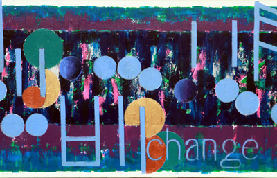 Things began to change with Naive Melody with the use of circles.   Using circles solved a major hang up with what to do with the 8th notes.  Now, Winter has taken that step much further with the evolution of the symbol of a musical note.  Over the years this art has gone from representing notation in it’s mostly low angle lean to almost a vertical stance. With Winter the shape of a musical note has gone from the oblong to the circle. At first there was a feeling that it made the canvases less professional looking.  That attitude changed quickly. It was obvious that the flow of the music was improved, because of the size  of these bubble notes.  This look fit the direction that the backgrounds and the other musical shapes, like the 8th notes,  were heading.  The circle is here to stay, but it’s evolution has only begun.