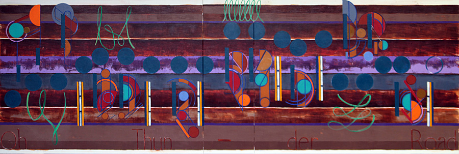 There was a thought that the eighth notes could be see as representing a stain glass look. This than could represent a religious twist on the meaning of Thunder Road. Interestingly, just after 9/11 there was a segment, on CBS Sunday Morning, about the correspondence’s friend who had died in the Twin Tower. At his funeral Thunder Road was played. That has stuck. Maybe, there is more, and this artwork has much more to say then Oh Thunder Road.