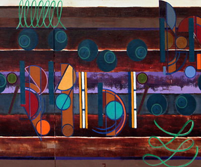 There is a concern that this work maybe too decorative. There is no response, the paint just went down that way. The smaller circles inside the notes certainly kick the flow across the canvas. There is a concern that there are just too many circles populating this work. That could be, but it is too late now, but that may play into future decisions. Every little style changed must be push to its limit just to wear out its vision, and open a path to the next, next.