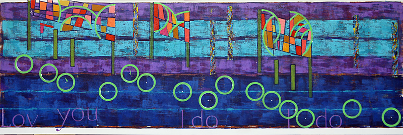 So, with More it because apparent some other method of painting the beams was needed and finding that Kandinsky artwork, made that happen. Now, the beams in More are not only eye catching, like in Baby Love, but they have the added look of increasing the flow of the canvas.