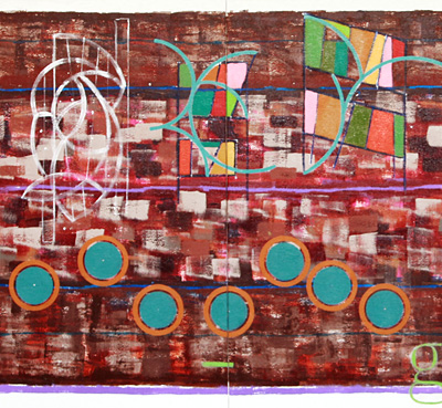 The Heart of the Matter 3 panels 30 inches by just over 8 and one-half feet. The sketch on the left came quickly Sunday night. The weekend was spent mostly away from art, except for late Friday afternoon into the early evening. When the painting stopped what had been accomplished of the sketch, were two straight lines, full of empty ideas. When returning home the solution for the design of the eighth beat became apparent to where it now appears to be flowing over the next quarter beat. What colors will be used is still undecided, but there is a thought to try and not to duplicate the beams.