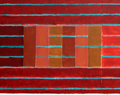Mozart’s K.525 Romanze Andante, 3 panel 30 inches by 10 feet.  For now this is the completed background, which is an abstraction artwork of its own  The goal of every painting is that each work is actually two artworks: an abstract background and the depiction of the flow of a particular piece of music.  It is hoped that together the two makes the one exceptional.