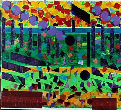 The other addition to this work is all those colorful squares that goes every which way. Again, they are seeking their own look, different from the upper and lowing sections of this artwork, where you see squares and rectangle, that represent fall colors. In the middle the color choice was anything but the natural colors of fall, and the images work with the rest of the work, but do more than just that. All those colorful shapes help to hide the boring background, and work will with the music to help keep up the fast pace of this six seconds of Vivaldi’s great music.