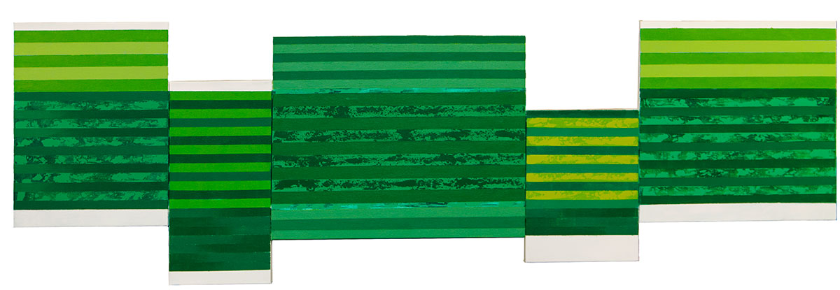 Like the two paintings for Japan, I am out of my comfort zone with this work. When I look at this painting and the similar size, unfinished work Take Five (scroll down two posts), my challenge is clearly visible. I can only do so much with green, and that is what I need to solve to create a special artwork that the University will be proud to display.
