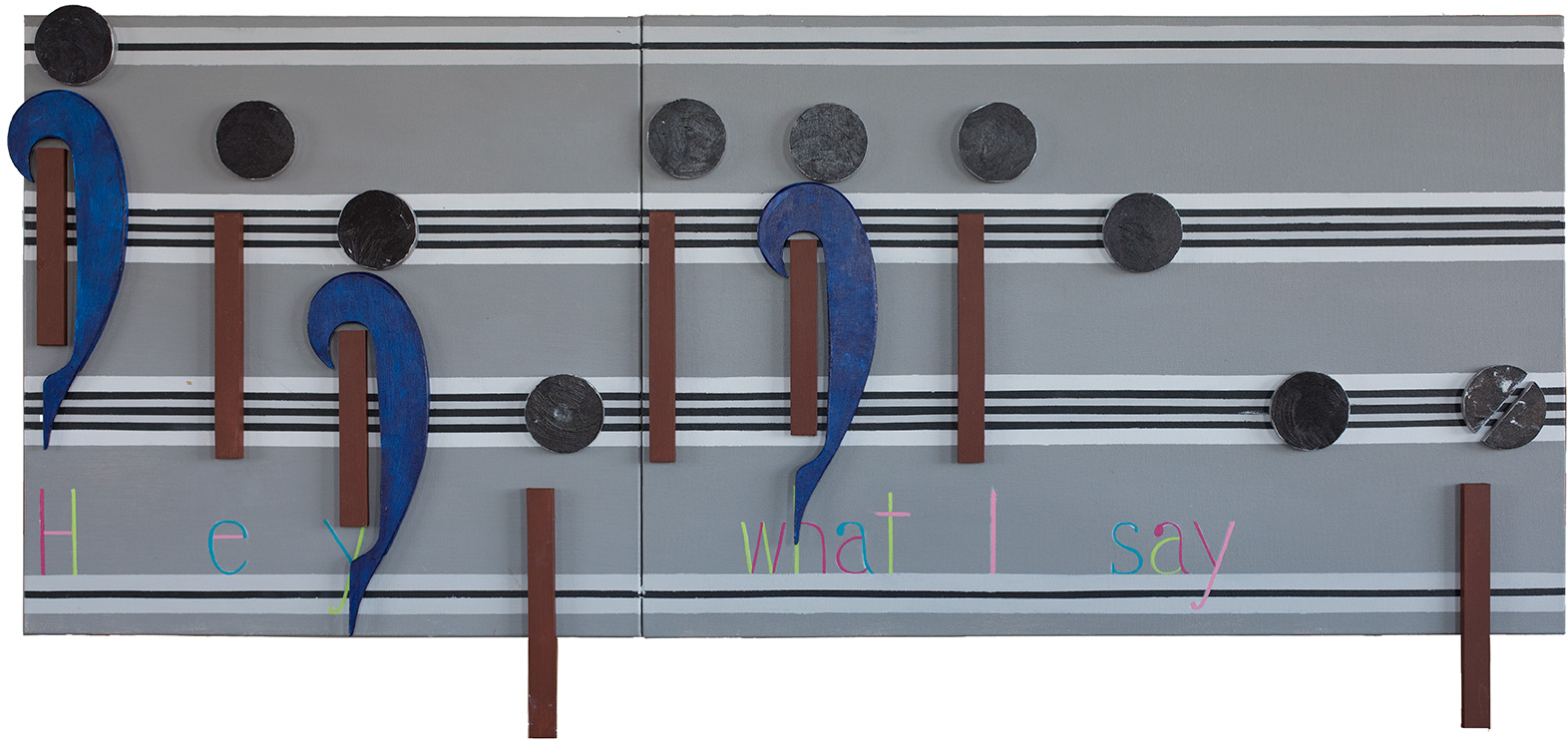 This image takes the original Black & White theme for this artwork, and look I have added all those colors. I discussed before that when I think of this music I remember my life back than in mostly black and white. Also, in the sixties, to be in tune with the times, I wore bell bottom blue jeans, own a number of Navy pea coats, liked corduroy browns, and in general wore a lot of dull solid colors. For those reasons, that is why I chose shades of gray to black to dominate this artwork, while using blues and browns for accent. When I looked at the words for this artwork, without at first knowing the why, I knew I did not want to paint them in any dull colors or shade of gray. I felt that none of those colors represented the lyrics of this music. That is when I understood, what my feelings about this music, where all about.