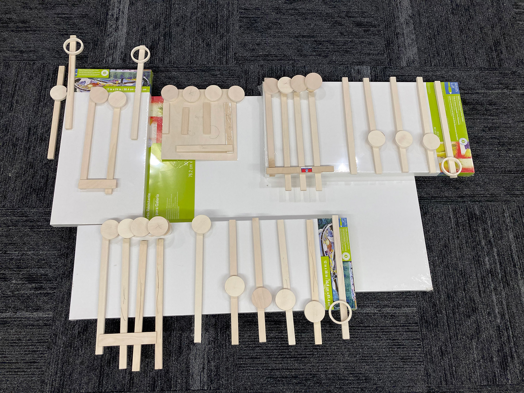 The plan was to use canvases from my ample stock for this project. These blog images and the audio sums up what I have been doing, for 60 to 70 plus hours 7 days a-week, since the middle of February. The smaller image is the setup for this project. I should have done that on Your Song. One goal of Just Another Day was to reduce the over length of the artwork by placing the speakers inside the artwork and not attaching them to the outside. This would create a smaller size work easier to store when that time comes, and it will. This project will be under six feet by four feet in height. Because of the limits of these four canvases, I had to cut back my original music sample. When laid out, the artwork music stretched to ten feet.