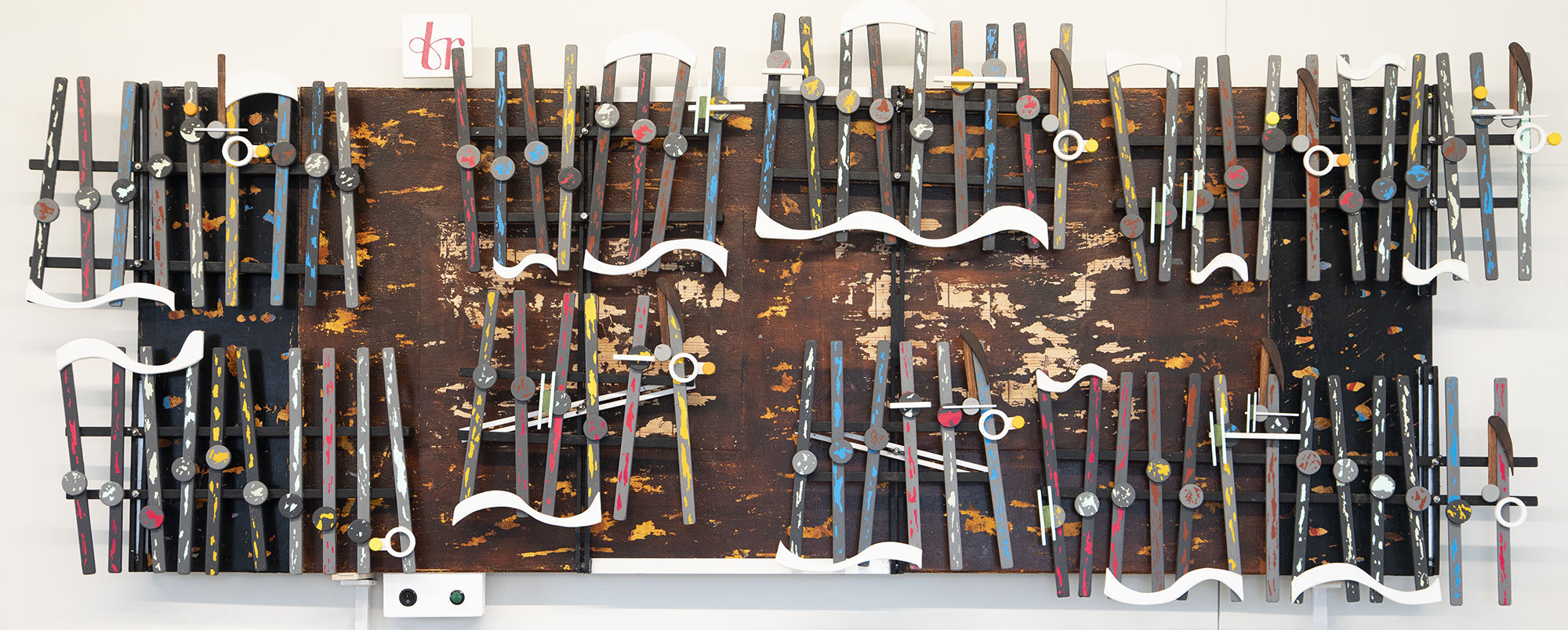 This Bach artwork was experimental, for it allowed me to slide the music sections about using mounted arms. Those two white mounted arms in the lower middle of the artwork are examples of what I used to connect the music to with bolts and wing nuts. When loosen, this then allows the music to slide up and down those arms. This Bach work is the first attempt at what I now take for granted. The problem back then was how to secure the arms of the artwork, which turned out to be not reliable.