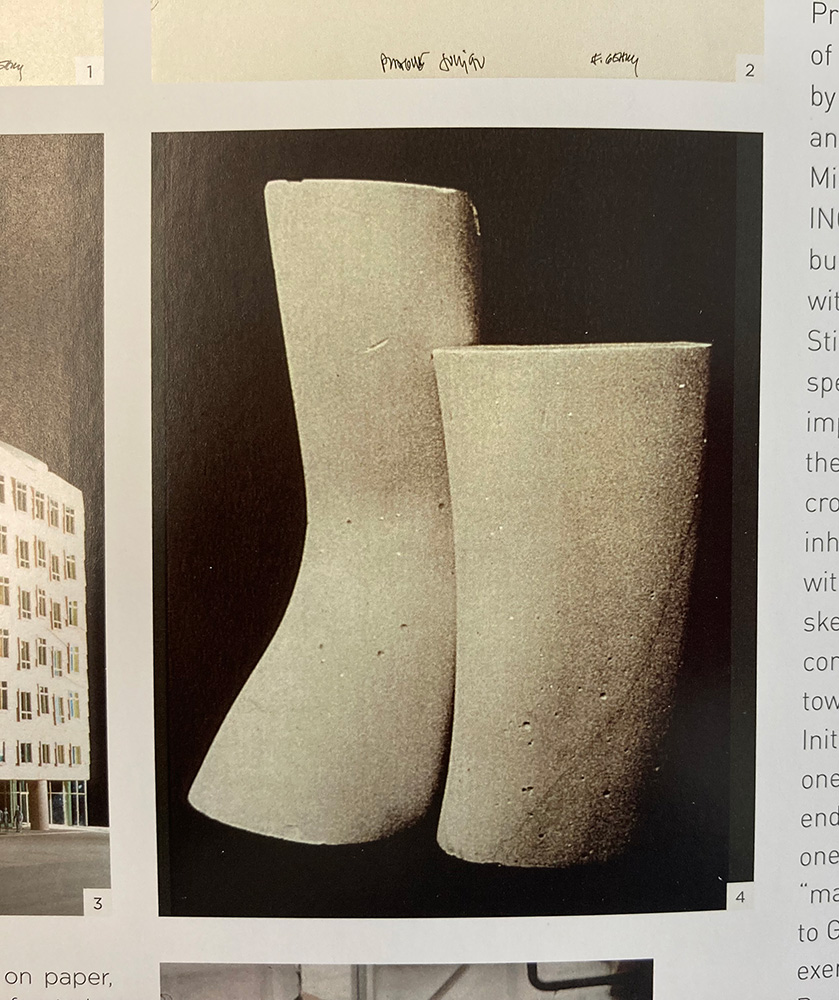 I see Gehry’s finish, especially his commercial projects, as high craft, especially in his use of speculator materials like titanium. I do not consider my artwork high craft and do not present them that way. I understand the beauty and high craftsmanship of great art that is favored. I just think it is a waste of time and has little to do with my message. I see my approach, for example, in the varied model pictures of Frank Gehry’s “the Dancing House.” I feel these models harmonize better with my artistic style. Add to that a little help from a rediscovered 2020 Bach project.