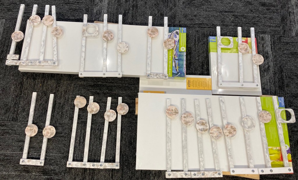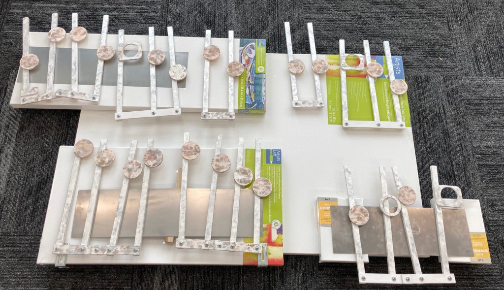 The background support is more complicated than creating the music. Cutting out the music from the wood is time consuming, but predictable, requiring supplies that are easily available locally. With my current music boxes using stretched canvases (to bring down my large extra inventory) not all sizes do I now have, or are available locally. That means, for example, if I need to order a canvas for the background or seek a solution to a construction issue, that could cause a delay in progress. Since I only work on one project at a time, timing my work schedule is important. That is a major reason, along with the challenge of design and preparing the background, that it is prudent that I design the background early in the project. That is what I am going to return to for next project and beyond.