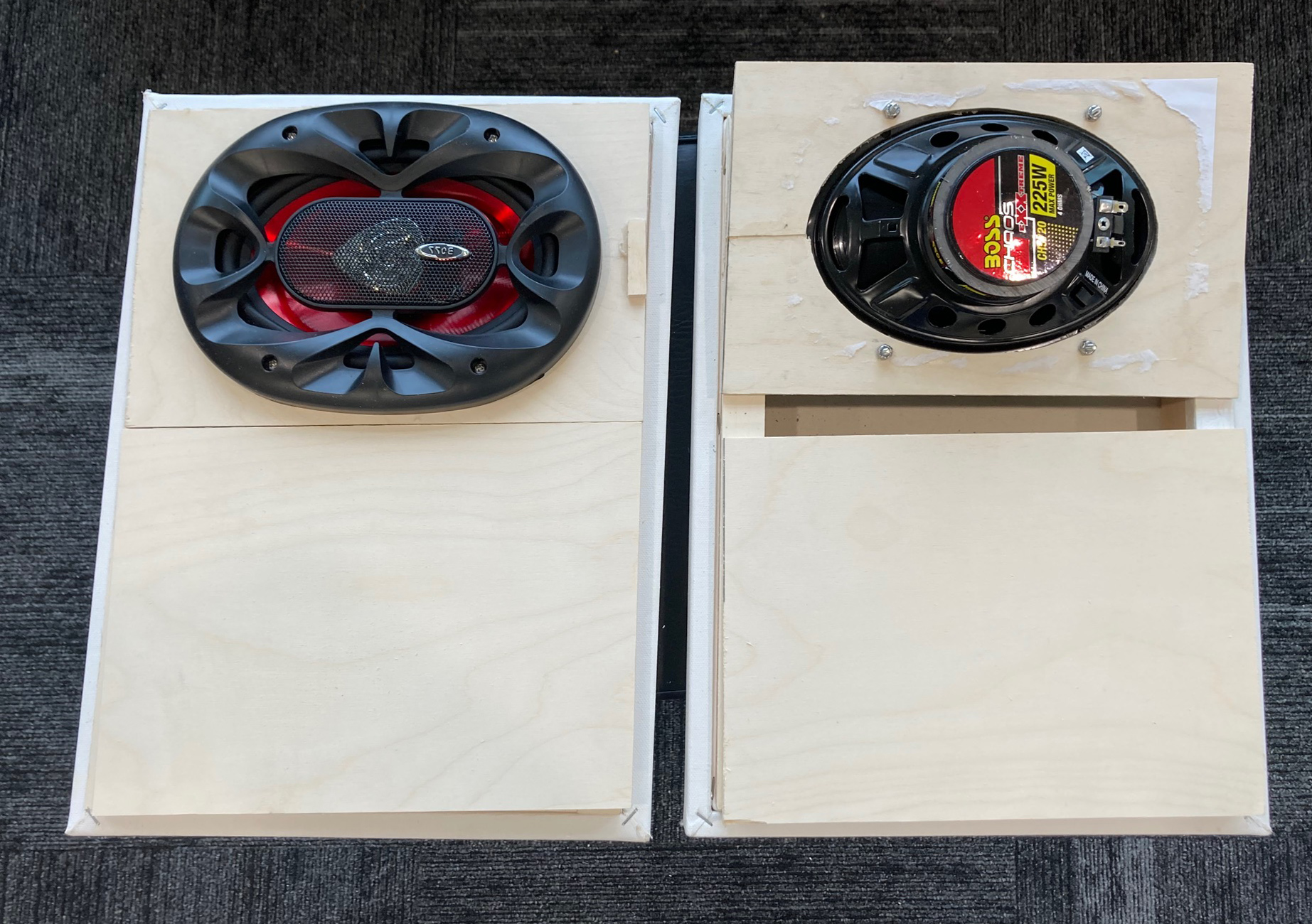 Next up was the building of the speaker boxes that will be installed inside 12 x 16-inch canvases. This is the first time using 5 x 7-inch two-way speakers. The hope is they will generate more bass over my four-inch speakers when connected to the 20-watt stereo system to be built.