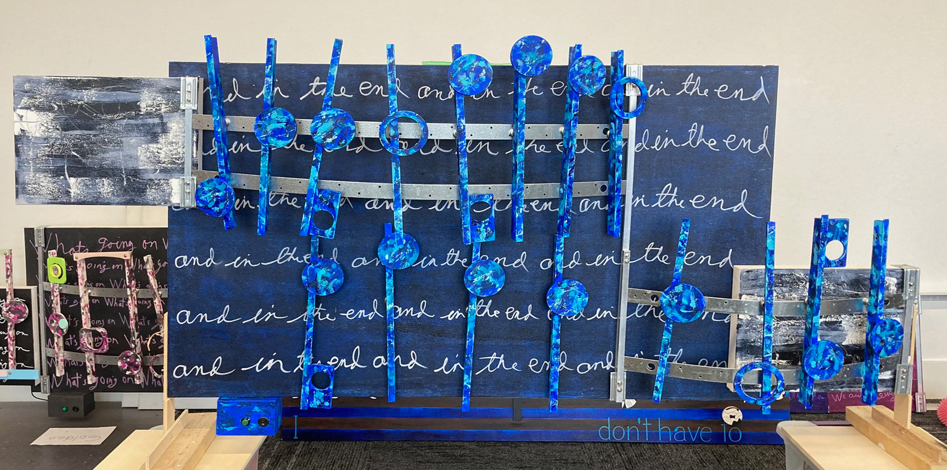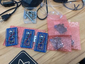 A pleasant surprise is that I am only nearing three weeks into this project. I took on the challenge of constructing three artworks, all at once, knowing my deadline was around the middle of this January. As of December 6th the visual part of this project is near done. Of course what made this possible was that each of these artworks share features and the same color chart. That saved considerable time to where yesterday I soldered together all three stereo systems.