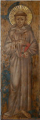 Here’s St. Francis — gold halo, rigid stance, but you can feel Cimabue trying to sneak in a little humanity.