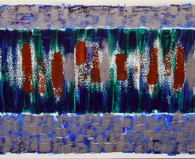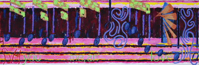 Ev’ry time we say goodbye nearing completion. The issue with this image are the note color. They look bright here and all most as bright in person. Today, they where all given another coat of Cadmium Red Light, with Magenta to add definition and contrast. The reason for the extra coat, and probably more tomorrow, is to get the red to hold. After a few days the notes, so far, have gone to matte, dull and somewhat lifeless. Hopefully, more layers will help put enough depth in the color. Maybe, the problem is the Windsor & Newton water based oils. Other options are being researched with few choices, so far.
