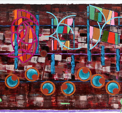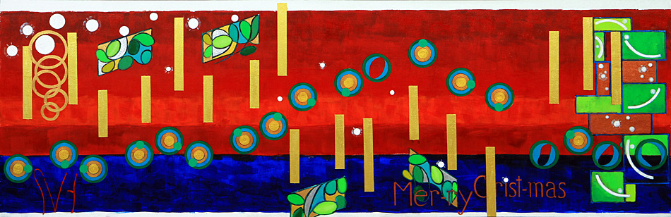 This painting is clean looking and that fits well with the Christmas theme. The feature of the round snow flakes works well helping to move the music across the canvas to where one flake dots the “i” on the word Christmas. The far right Tie feature worked out well, and is part of the evolution of the last few paintings. The difference in this work is the softening of the tie to blend better with the rest of the canvas. Of course, the use of a number of iridescent colors, including gold, silver, and bronze, fits with Christmas. All-in-all this may be the best of all the Christmas works, so far. A larger version of this music will be uploaded to www.scottvonholzen.com over the weekend.