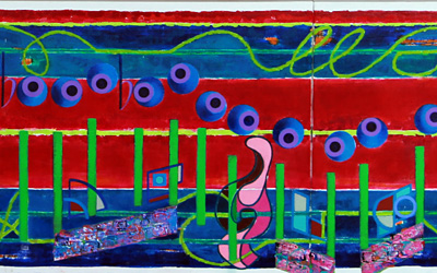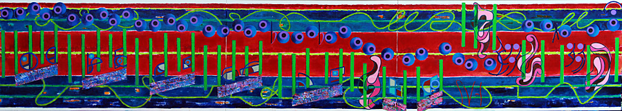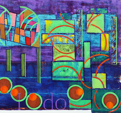 The third style point used in this work, that has been mention, are the little abstractions that are the shafts used in five different locations. At first they where thought of accomplishing something special, but soon those feelings faded away from that when they appeared to be lost in this work. It was only adding the light green line along their edges did they seem then to pop back.