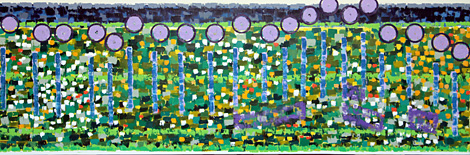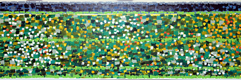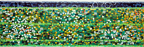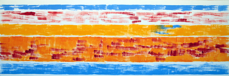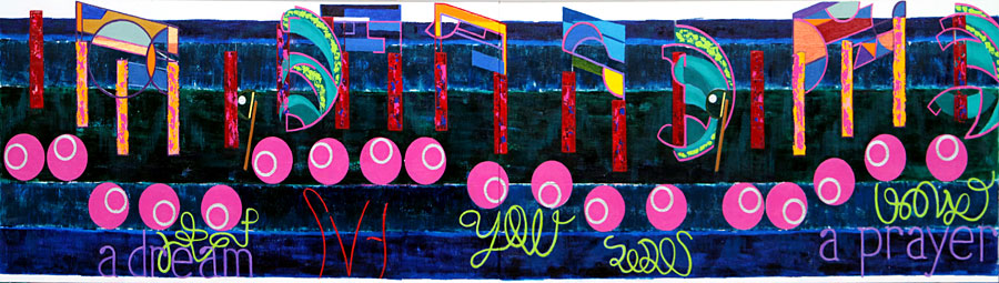 Don’s stop Beleivin’ 24 inches by 6 feet. This is the Birthday painting for 2011. Today, is July 31st, and although the original plan was to paint this work all in one day, that is not going to happen, because it is going to be impossible to finish this work by Midnight tonight. It is now 8:35pm, and the earliest I was able to begin this work. Life just got in the way today. Because there was a thought that maybe this would be a problem, tomorrow is a vacation day, and this work will be finished, hopefully early in the afternoon. Still, no matter, I present this 2011 Birthday painting.