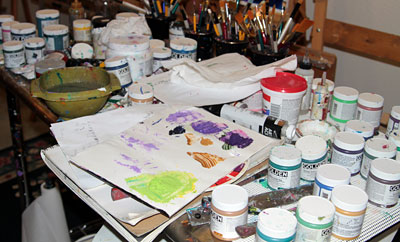8:59pm : I have a great many books on Vincent Van Gogh but do not have any large reproductions of this work. The best I found is in the book Van Gogh In Saint-Remy and Auvers. Also, I have another decent reproduction found in The Power of Art by Simon Schama. It looks to me that the base of the Van Gogh painting is Green Gold so that was rolled on. Good start, listening to a live version of Thunder Road.