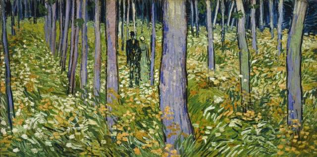 To save considerable time and to sharpen the decision making, each Birthday painting that has been done, there have been only two done in this similar fashion, a Vincent Van Gogh Painting is chosen for the color reference. As you can see this years choice is a late painting called Undergrowth with Two Figures.