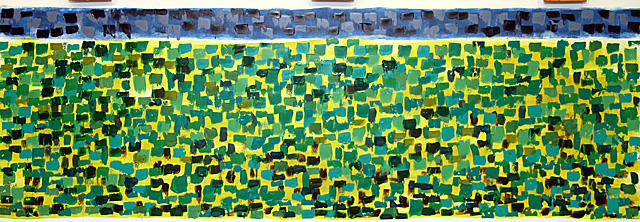 This artist never has enough distinct colors to work with. The winning parts of Don’t Stop Believin’ are the background, the way the shafts of the notes where handled, and the over all use of color. The disappointing parts of this canvas are the ties and the beams, and their lack of creativity. The design of the eighth notes (those are mostly the left side notes) kinda works, showing some uniqueness in design, but they broke little ground. Still, they work, and their simple design saved a lot of time. To end, the conclusion is no one really gives a damn if this picture was painted on this artist birthday or not. The important part is does it hold its own, and like what was said it does, and truly in the end that is the end that really matters.