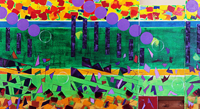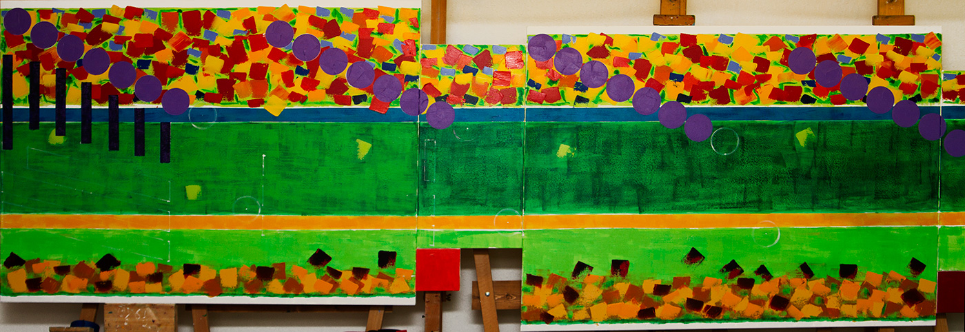Back to Vivaldi’s Autumn Allegro, the only parts that disappoint me are the background and the beams of the music. When it comes to the background, the style I am using to paint them is boring. In the past I have done better. I need to figure out someway of applying acrylic paint that does not create a static background. I have done this in the past, so maybe it is time to take a second look. The other disappointing part of this work is my handling of the beams ( those long rectangles that form the base of the music). I need to break some new art ground and like the background find my own way.