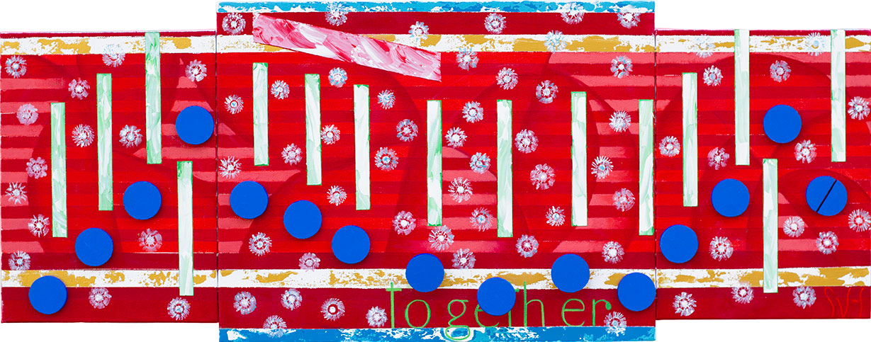 To start with I added narrow gold and blue striping across the entire work. That gave it the Art Deco look which did greatly improved the interest and the character of Embraceable. I then repainted some of the original stripping to improve the contrast, and to blend better with the music.