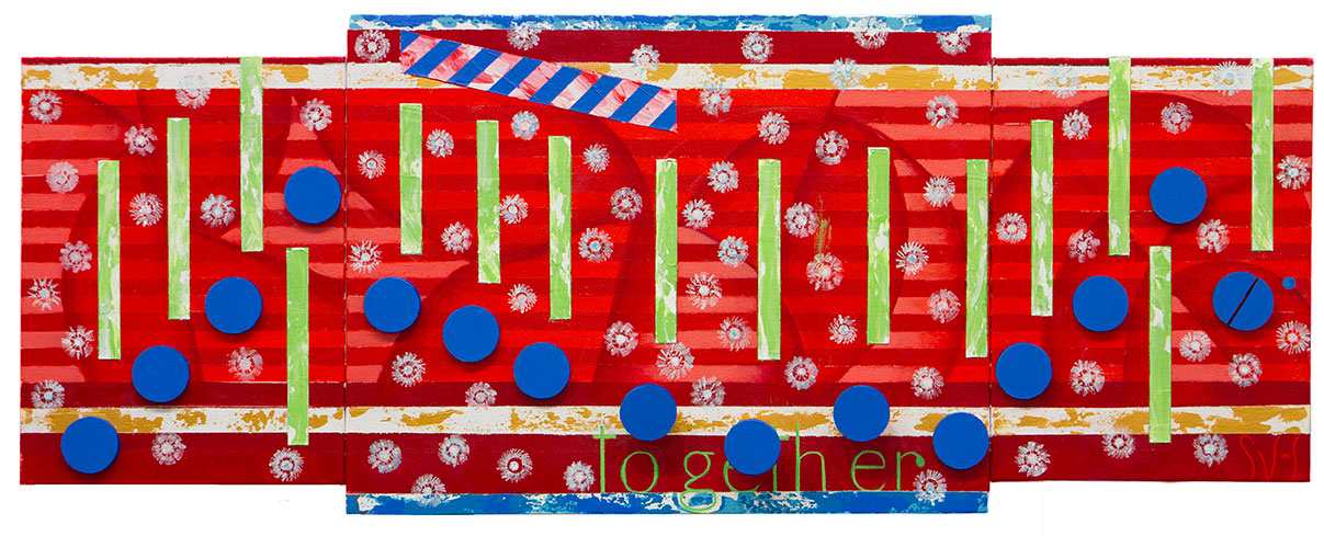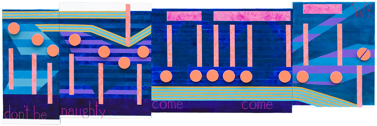 Embraceable you is finished. This painting comes from a Jazz Standard piece written by George Gershwin in 1928. This artwork consists of four canvas panels over sixty-four inches in length, and is larger than I had originally planed. What changed this artworks dimensions was my decision to add extra words, and then increase their size. To make room for the larger font I needed to use larger canvases, which then required me to enlarge the music.