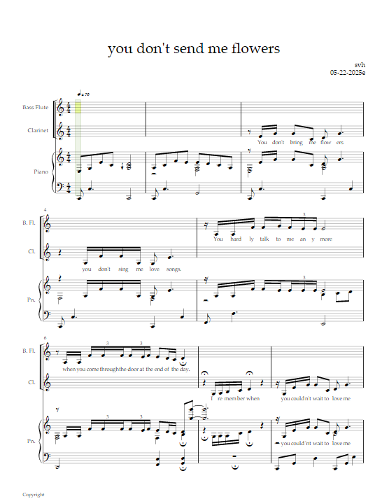 June 27th was the near completion date for the Sorry. You Don’t Bring we Flowers based on the duet with Neil Diamond and Barbara Streisand, was complicated by balancing two different key voices along with violins and two different pianos. You Don’t Bring Flowers was finished on July 29th.