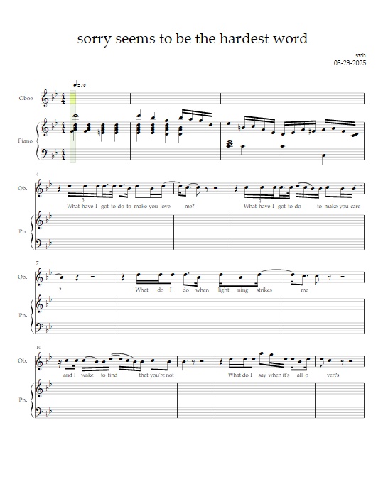 Articulation and phrasing adjusted multiple times to match vocal nuance, especially around: