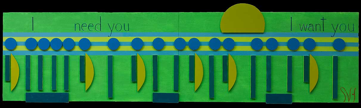 cherish_2Cherish, this painting is unusual in that the flow of the music is a straight line.  The colors theme that I am uses comes from The Association Greatest hits album cover, and from there first album which included the song Cherish: