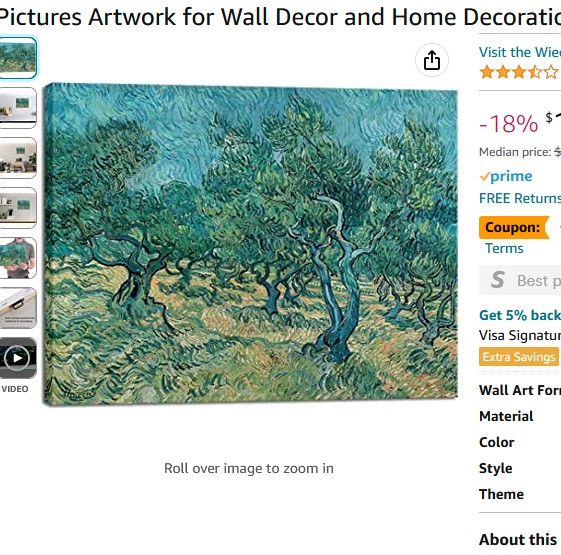 On Amazon there are several commercial available framed images of this olive grove on Amazon. They all seemed dark to me. Looking on line I found a public download of a higher pixel image of this Van Gogh artwork. Both previous artworks, Wildfire and then Shenandoah, contain purchased commercial prints of Van Gogh art. Having access to a higher quality image of Van Gogh’s Olive Grove artwork allowed me to adjust the colors and contrast. Whether I am accurate at less my print feels more like what I expect I would see if I could see this artwork in person.