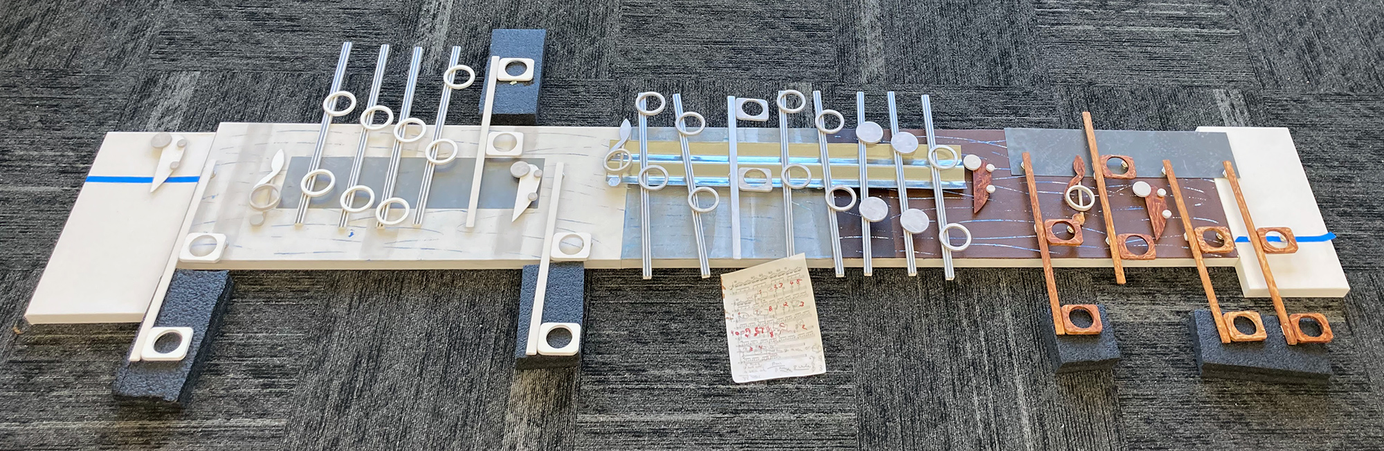 The slide show below includes snapshots of three artworks, Martha My Dear, Beethoven 5th, and Crazy at Gallery 1802 in La Crosse, Wisconsin, after the hanging. The dangling power chords and brick I saw as an issue. I understand people would put whatever in front of the artwork. To solve, and maybe retrofit pass works, this current artwork will have a lithium battery as its primary source of power. This removes the need for a nearby plug and the clutter of a power brick and cords. Another issue was the size of my artworks compared to everything else in the gallery.
