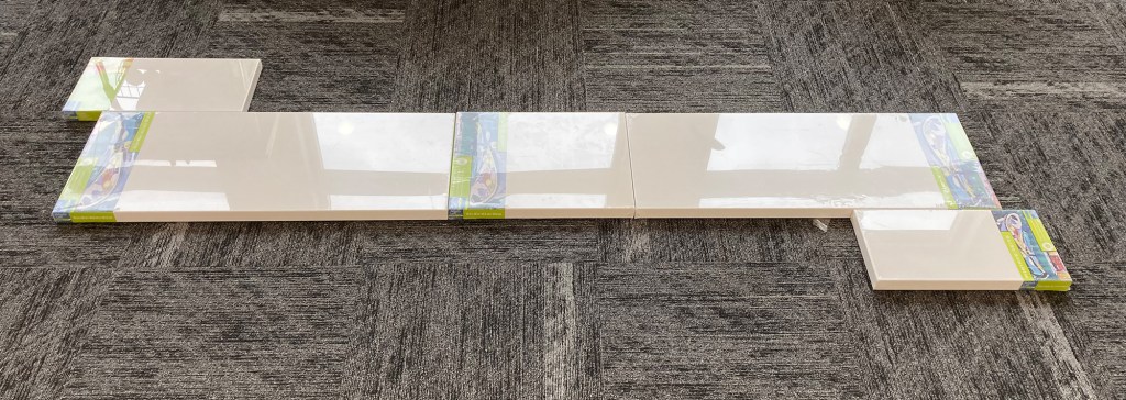As I neared the end of this blog entry, I changed the plan. Realizing that a ten foot long artwork would limit exhibition placement “In the search for empty walls” (my quote), I moved the speaker boxes to the sides. This reduces the overall length to nine feet. That will be an improvement if I solve the probably design issue when attaching the music.