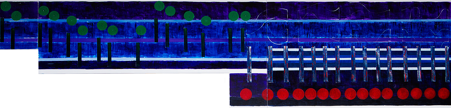 Vivaldi’s The Four Seasons – Summer – adagio,  painting number four of  thirteen needed to complete this series. This artwork consists of 5 canvases with a total length of 12 feet (3.66m).
