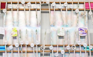 Here are two videos of Glen Campbell singing live Wichita Lineman. I chose my base colors (Red Oxide, Silver, and Cobalt Blue) used in this music box from these two videos.