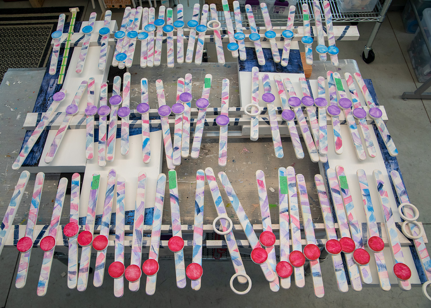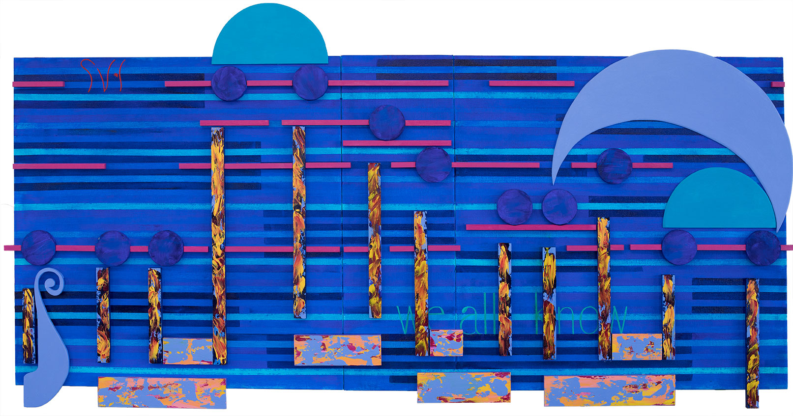 Throughout Rembrandt painted on rectangle pieces of wood or stretched canvas, which in his time was common practice. In my time when I began turning sheet music into art, starting with rectangle canvases placed on their long side made sense. A rectangle shape for a musical artwork was a good fit, reminiscent of a sheet music staff. And that worked as long as I thought that painting sheet music was the plan. But sheet music only plays a small part in what is music, and to grow this art I needed to find a better representation of what I think of music as a multidimensional experience. That thinking lead me to the creation of this art’s first 3D artwork, Sweet Little Angel by B B King in 2015. Currently, adding LED lighting is opening up another musical dimension. That brings me to this to visual step forward with this first image of Our House.
