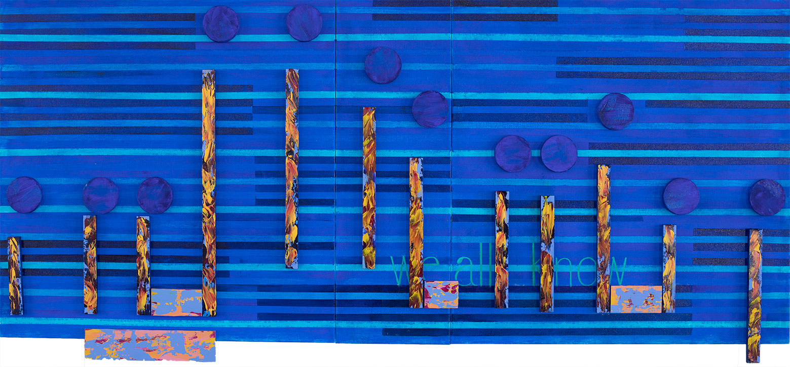 My words for this video “We all Know,” offer, what I always try to accomplish, multiple meanings for the viewer.  As part of this art since the beginnings their placement has been slowly changing. That is another discussion, but now words have no exact location, only a place in harmony with the Artwork.  That change in thinking is helping the Art of the Artwork to evolve from the restraints of the music.  Someday the Music will only be the starting point:   One day One that comes from One finally will be Two.