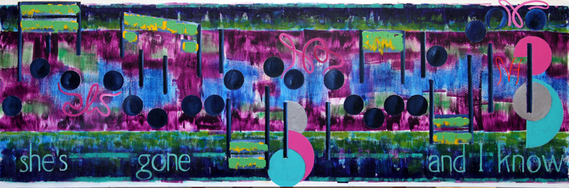Listening to Ironic by Alanis Morissette. This is the final image of this painting titled Baby Love 24 inches by 6 feet. The words chosen for this work because they would challenge some, maybe most, viewers. The line from the music that they relate to is “Instead of breaking up let’s start some kissing and making up.” Is that music not sweet and innocent, which was apart of that Time that I was raised and help formed a foundation of many of us.