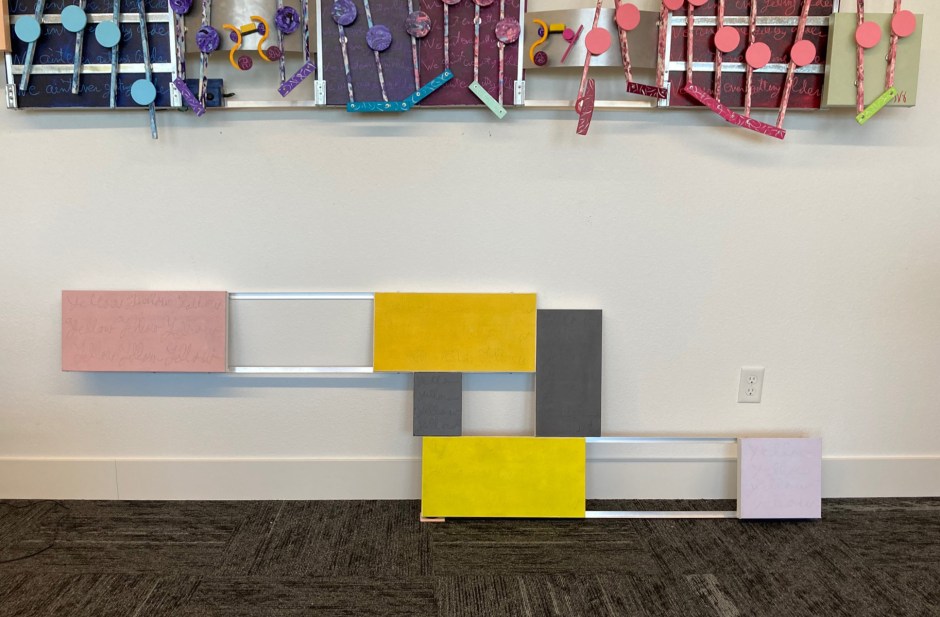 The pink repeating words “What’s goin on” dominate the image of the main canvas,” This is was my first time use of acrylic marker pens. I choose the color pink for this music which is performed by 4 non-blondes. Considering how many of my artworks include words, finding this easy to use, hopefully archival writing option took a long ago to find. Being the unknown, unknown artist, without a fine arts degree, has its consequences. Upon looking closer, Into the black background I have also scratched into the paint those same words, “What’s going on,” To note I left the question mark off the artwork to allow the viewer the flexibility to query their meaning.