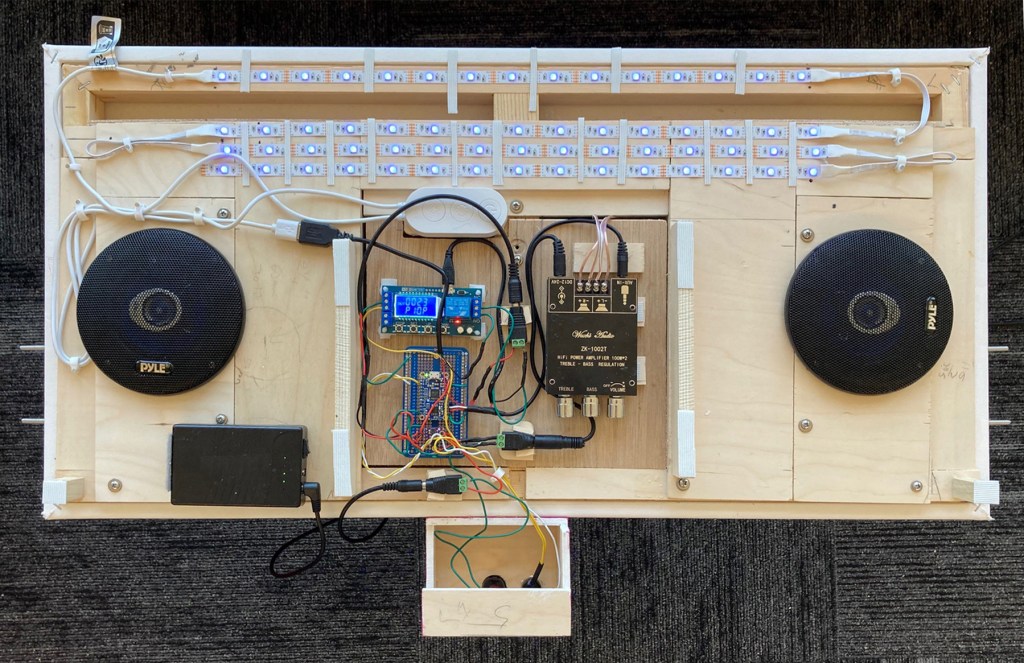 First tests of a new optional amplifier. The Adafruit sound board comes with a default sound file used to tests the speakers.