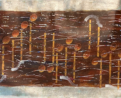 That left me with the possibility to use up the canvas that had been lying around my storage for years.  That idea and the soon lost of my studio meant that I could change the way I made my artworks.  What convinced me I needed a change came from my growing frustration over the sizeable time and effort that each of my latest projects has required. It takes easily over a month and from 40 to 60 or more hours a week’s worth of effort to finish one artwork, and for what result?  This year the results for all my efforts to finish new artworks has been I get to take a nice photograph of my finished artwork.  I then put it on side easels in the studio until it gets in the way, or its ideas are no longer needed.  It then goes in storage with the other hundred plus other artworks that I have rarely seen over the years. I then start the next project and everything repeats.  So, why not go back to doing easel work using canvas instead of custom wood pieces?  This could be a fresh opportunity to try ideas on a simpler two-dimensional platform that will include music.  Japan would not have wanted the music. They only needed something artsy to fill a space on a wall.   At this moment lets us begin the lost chapter of this still unfolding story of one guy with one purpose, and one goal to find out. Did he make it?