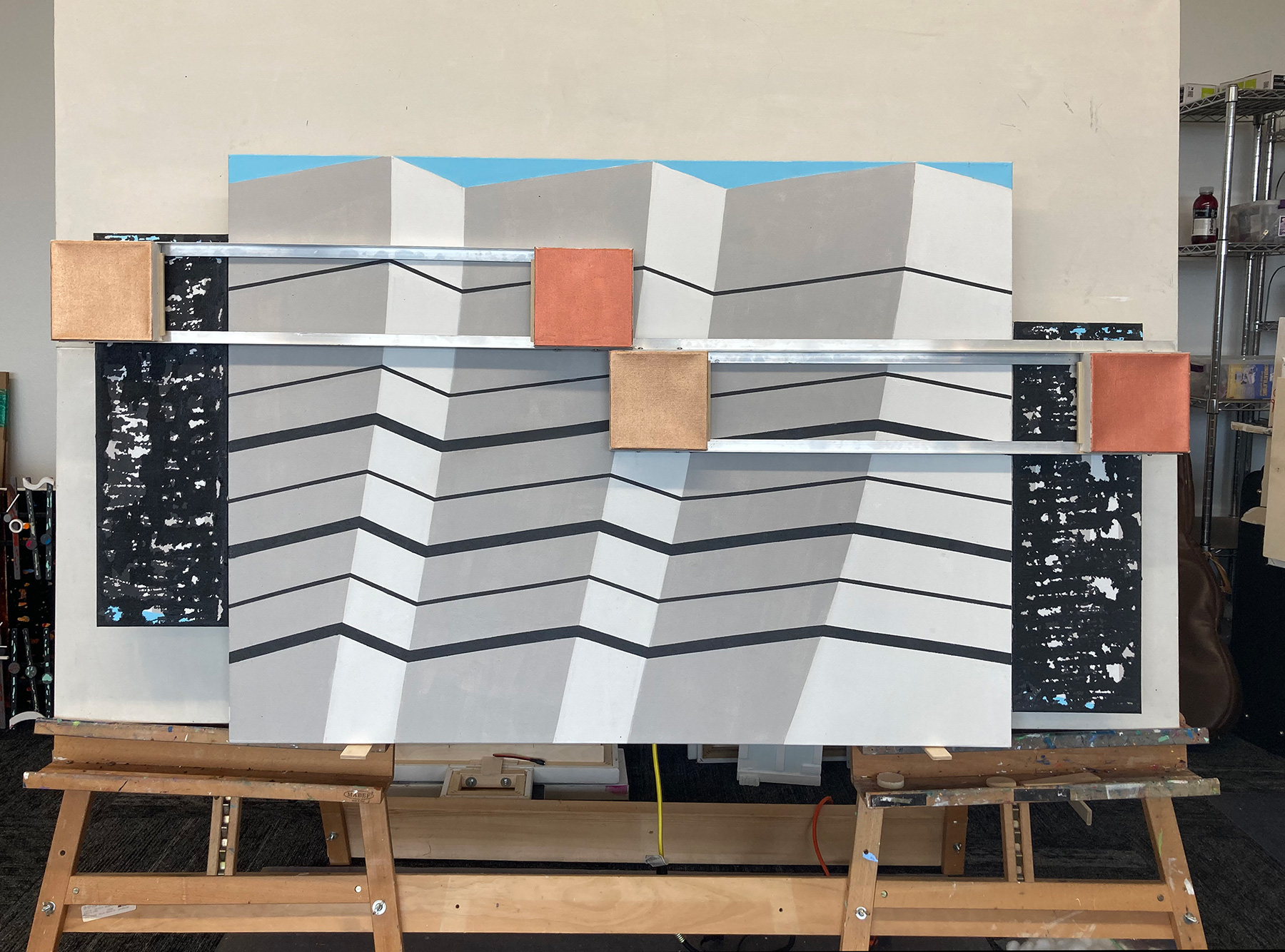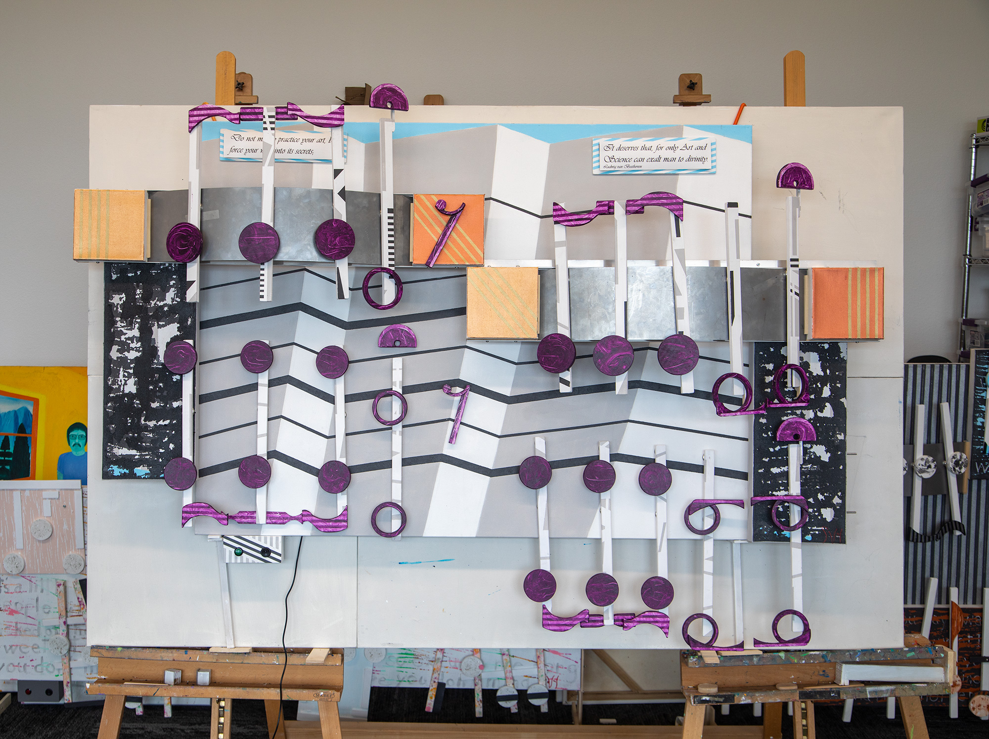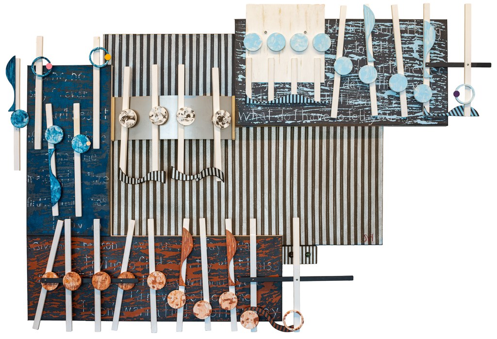 All of my projects, including these music boxes, are built from my cover sheet music. This sheet is used to create the project guide and music for the artwork. Of course, out of necessity and choice, I separate these artworks from sheet music, eliminating as many pieces of notation as possible, leaving this arts foundation, the up and down flow of the music. I then have the option, for artistic reasons, of putting back parts of my cover sheets’ information. For example, in the finished image above, I have added two eighth note rests. I rarely do this anymore. I included them in this project, for no other reason, then visual interest.