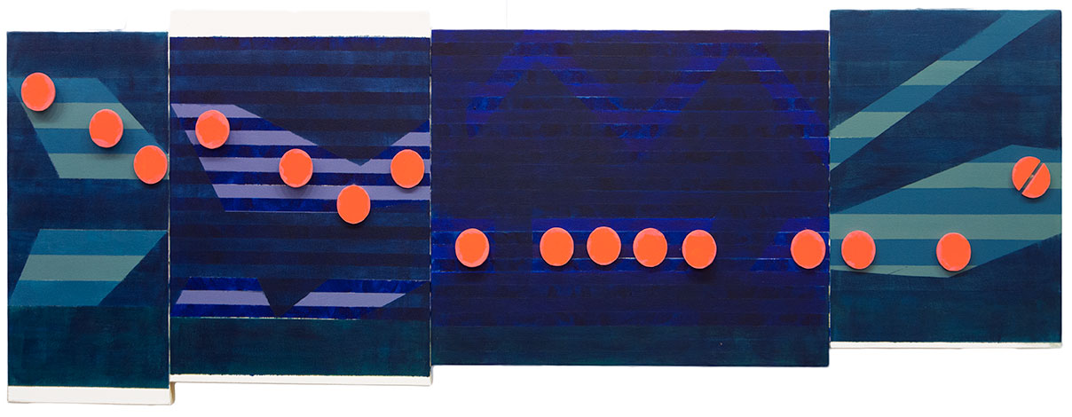 To start with I added narrow gold and blue striping across the entire work. That gave it the Art Deco look which did greatly improved the interest and the character of Embraceable. I then repainted some of the original stripping to improve the contrast, and to blend better with the music.