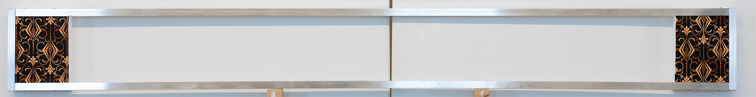 This is a special project for an important event.  To start with this Artwork, of course, will build on the past, but already there are some big differences from recent works. This work is already six feet in length and the two end 6 inch by 8 inch canvases are all that I will be using.  Also, the distance between the canvases is incredible long and empty which will make for a lot of issues and needed problem solving.   Another first time feature is my use of printed decoration that I than attach to the canvases.