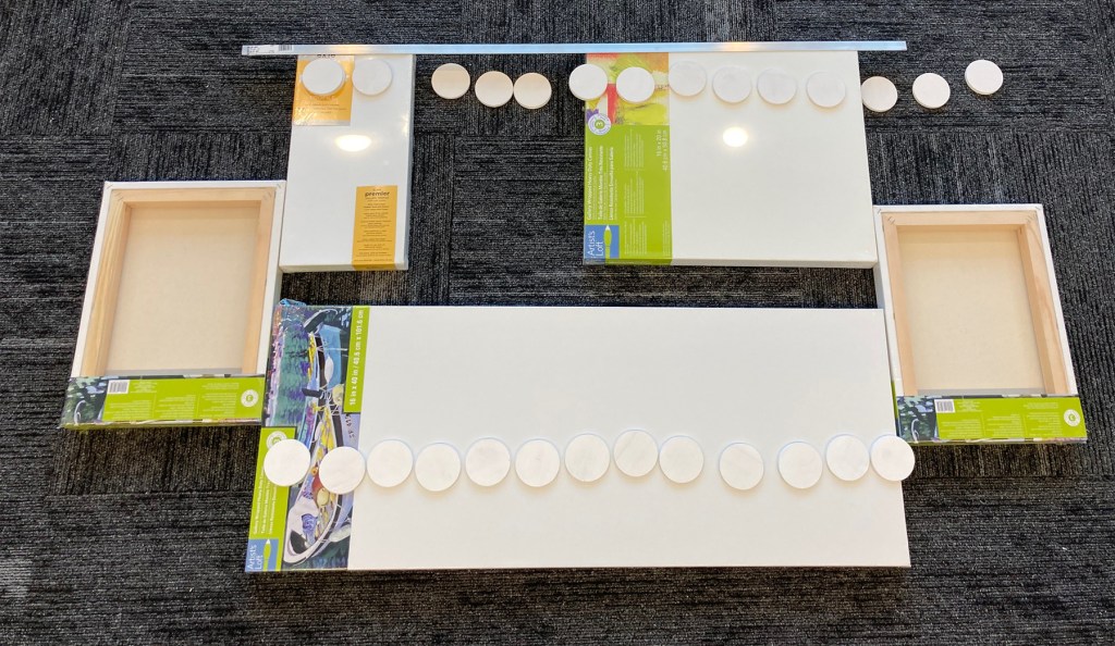 This first image shows where I am laying out to music to see if most of it will fit on these size canvases.
