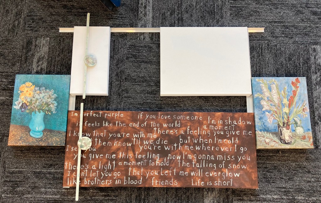 The reason I am using two wall prints in this artwork, is to raise their status from cheap household wall art to art. It is the surprising quality of cheap wall art that I can see where your average kitchen table artist will eventually find it impossible to compete with. Even without Van Gogh’s raised textures these inexpensive Amazon wall art pieces would look decent or even nice in your average living room. If they were framed, they would certainly gain increased prestige. Even on the internet site Etsy, where flower prints are handmade, these two $14 framed prints hold their own in look and price.