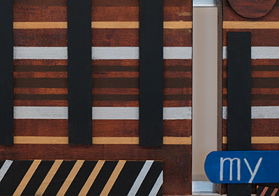 Two Canvases with aluminum and wood features, 29 inches wide by 15 1/2 inches high.