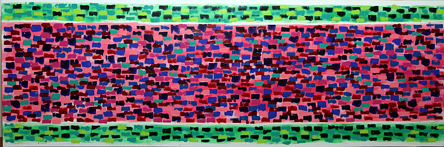 This art is evolving with each canvas in search of a unique style for displaying a unique theme.  A  question that bothers is what happens when you find that unique way of expressing  paint on canvas?  Here the wonder is what went on in the minds of Jackson Pollack and Mark Rothko when they new that they had found their own styles.  Pollack best drip paintings occur around 1948 to 1950, judging that from the book Jackson Pollack, that was part of a 1998-99 exhibition of his works at the Museum of Modern Art. Rothko’s style found its moments, again around 1948, and truly hit its signature look in the 1950s. Strange, paging through Mark Rothko The Works on Canvas, is that the last painting pictured, done in 1970, looks similar in style to those done in the early fifties.   So it appears that every style, even your signature style,  can either run its course quickly as with Pollack, or in the case of Rothko, be repeated and tweaked for twenty years. Just thoughts, for at this moment nothing is preventing this artist from going in any direction.  And I mean nothing.